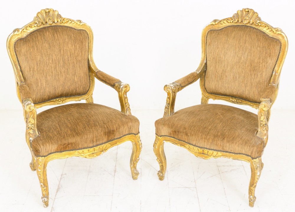 Pair of French Gilt Open Armchairs c.1910 (1 of 8)