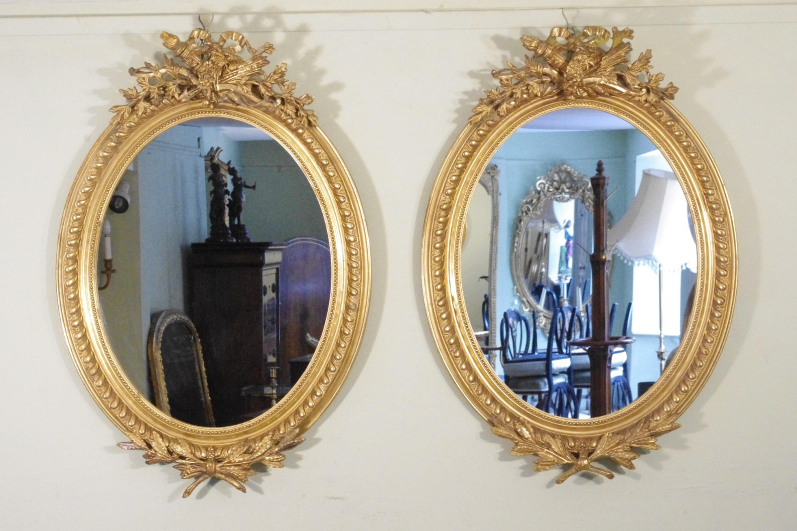 Pair of French Gilt Oval Wall Mirrors C.1880