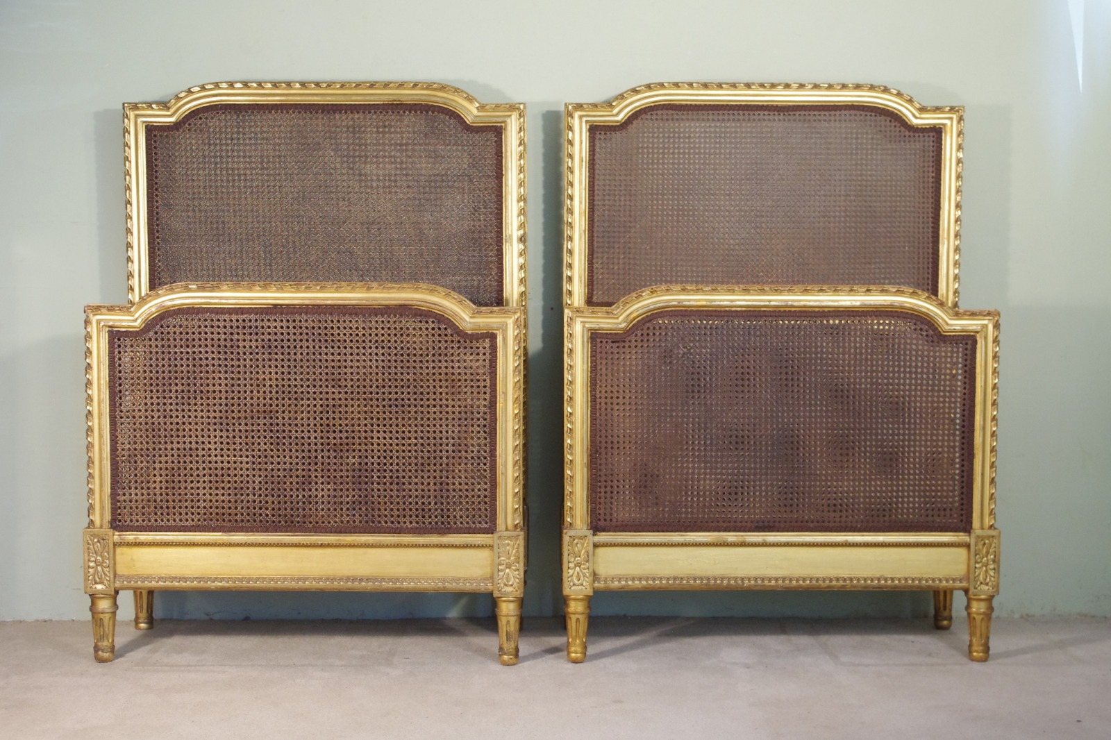 Pair of French Giltwood Cane Single Beds (1 of 17)