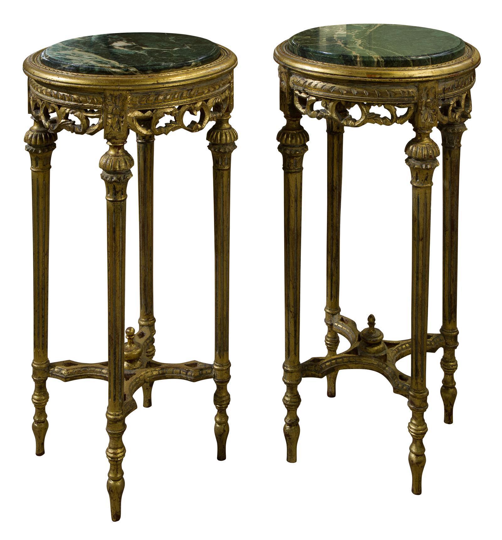 Pair of French Giltwood Carved Marble Top Stands (1 of 6)