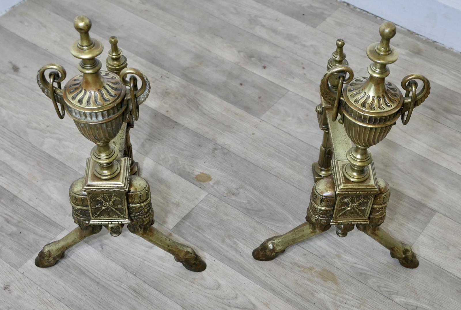 Pair of French Hunting Theme Brass Andirons or Chenets