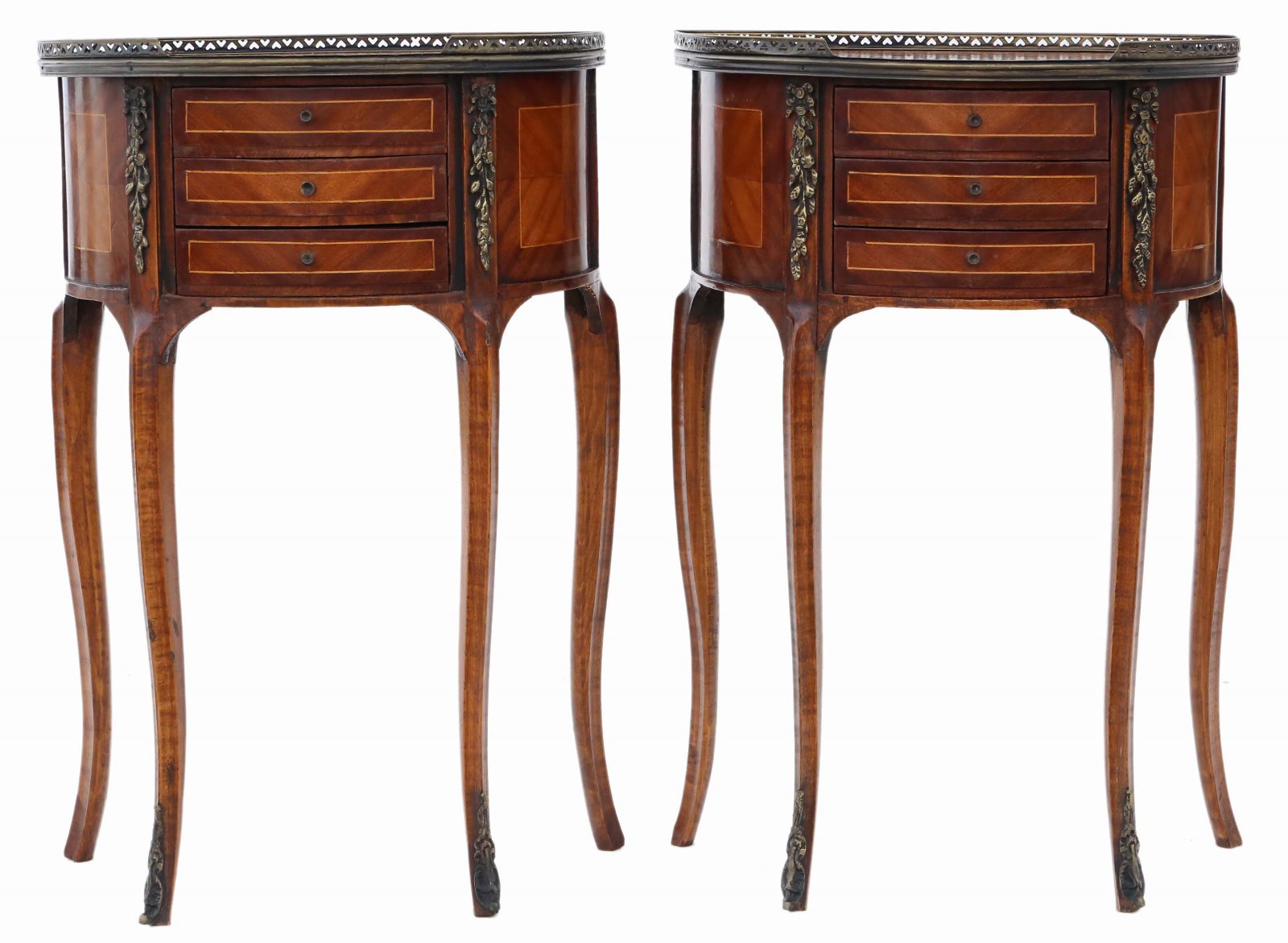 Pair of French Inlaid Marquetry Bedside Tables c.1915