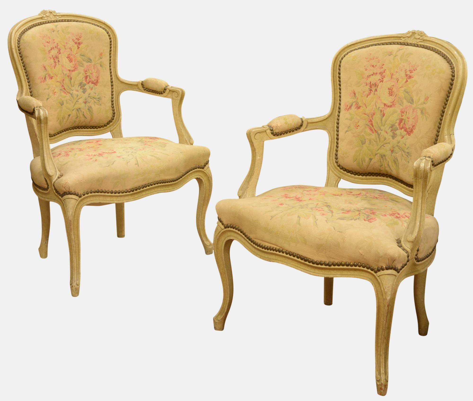 Pair of French Louis XV Style Fauteille Chairs c.1920 (1 of 1)
