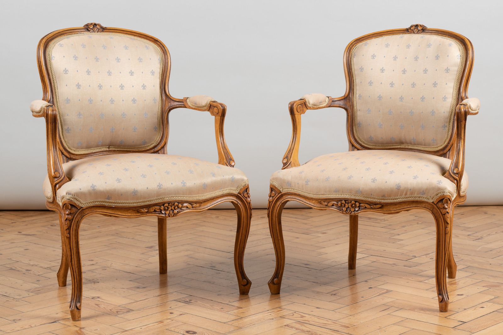 Pair of French Louis XV Style Walnut Armchairs (1 of 9)