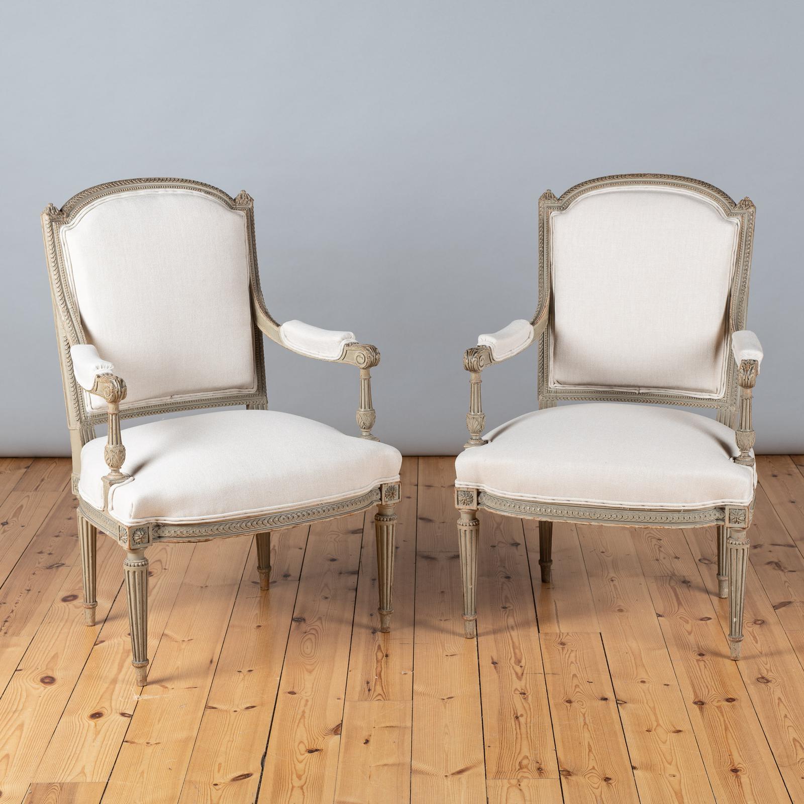 Pair of French Louis XVI Style Painted Upholstered Armchairs (1 of 8)