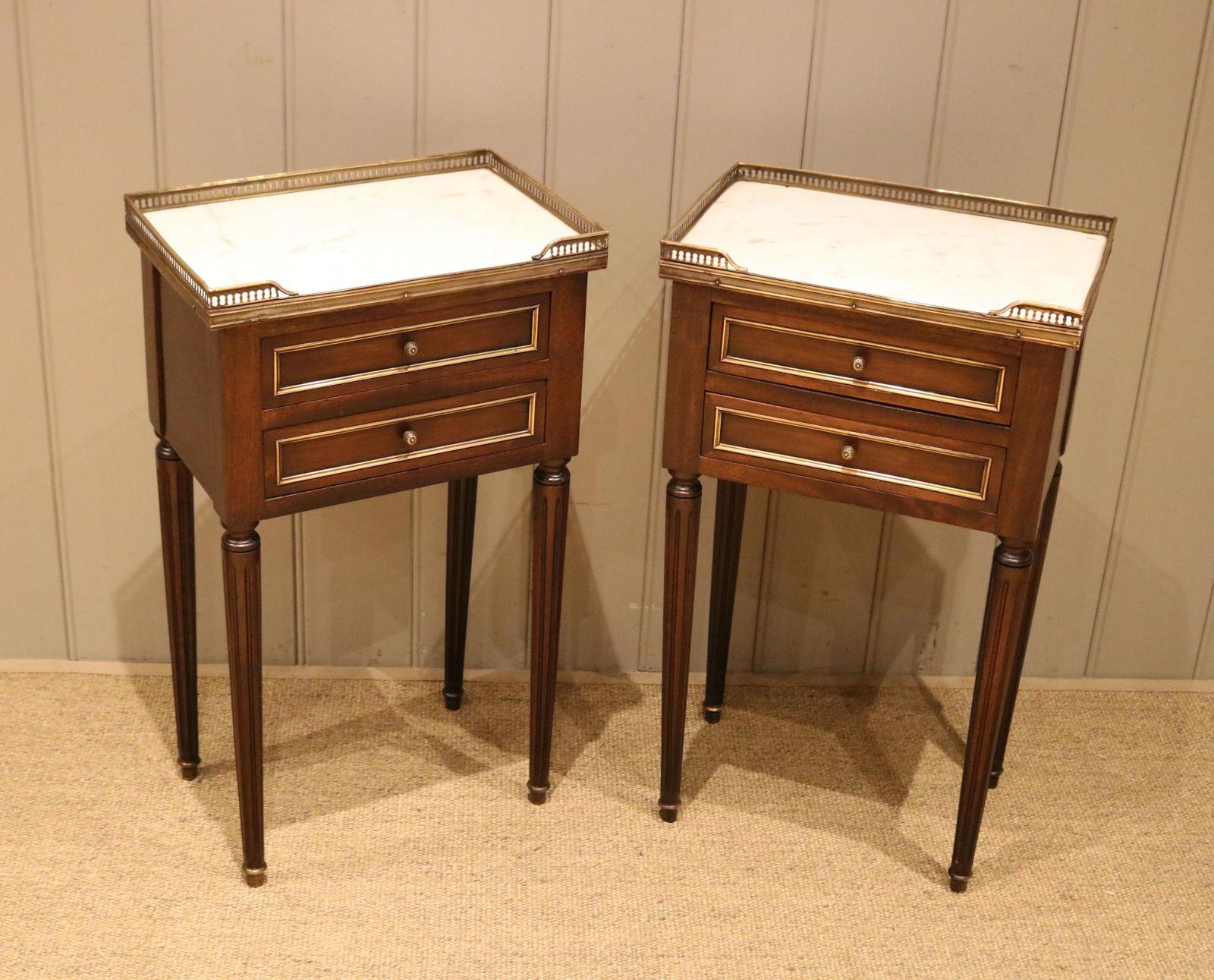 Pair of French Mahogany Marble Top Bedside Cabinets