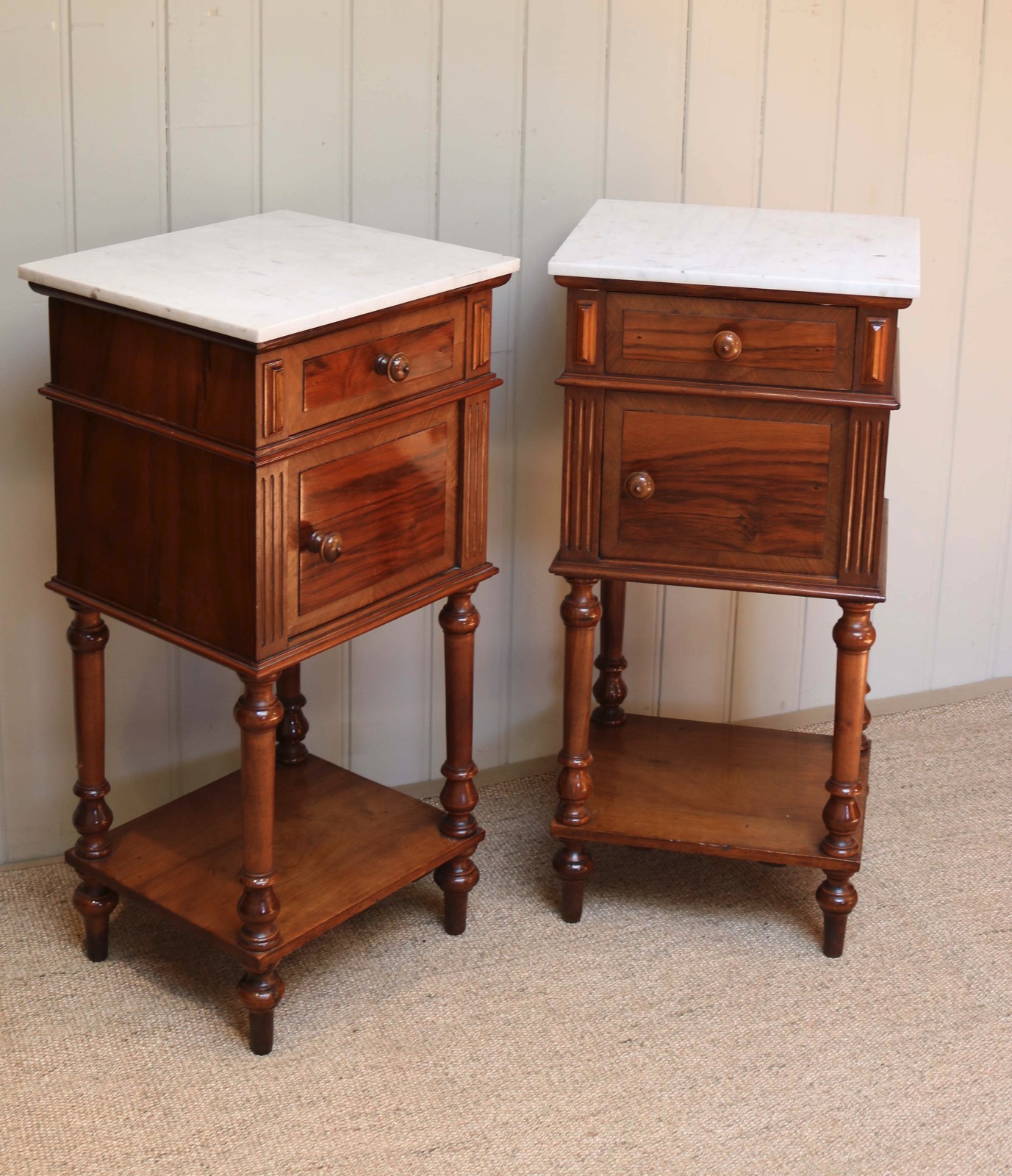 Pair of French Mahogany Marble Top Bedside Cabinets c.1900