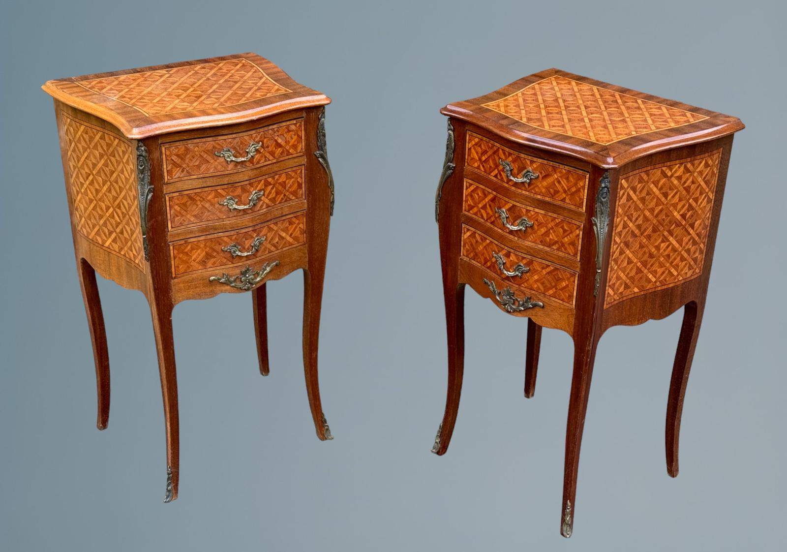 Pair of French Mahogany & Parquetry Inlaid Bedside Chests