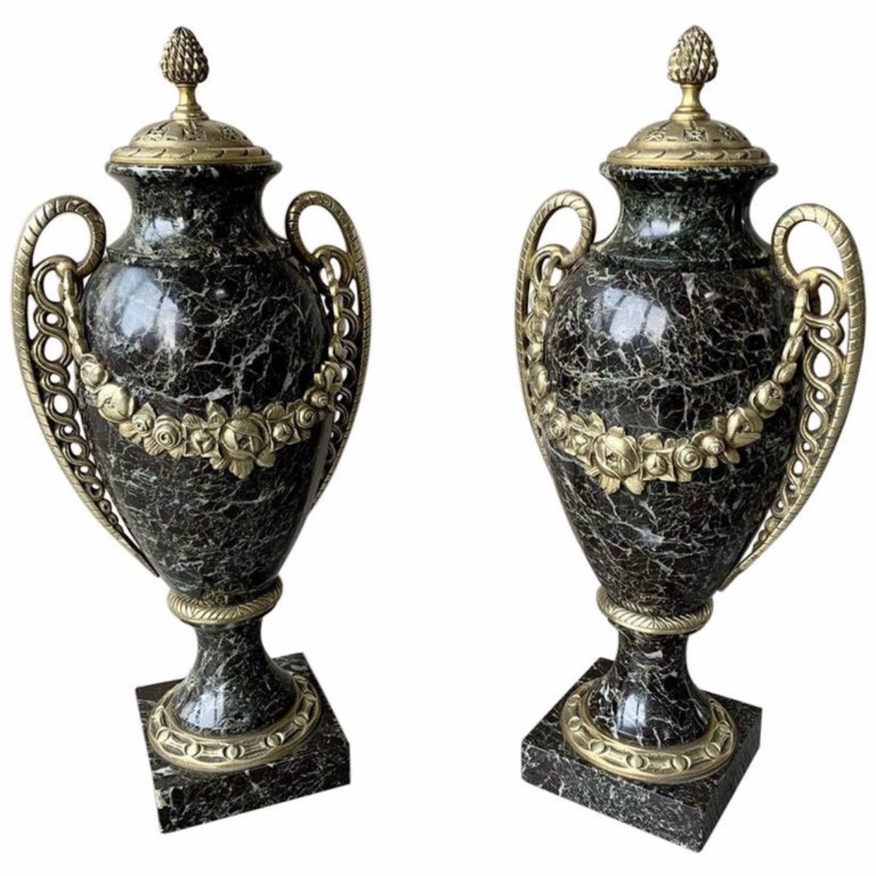 Pair of French Marble & Brass Cassolettes