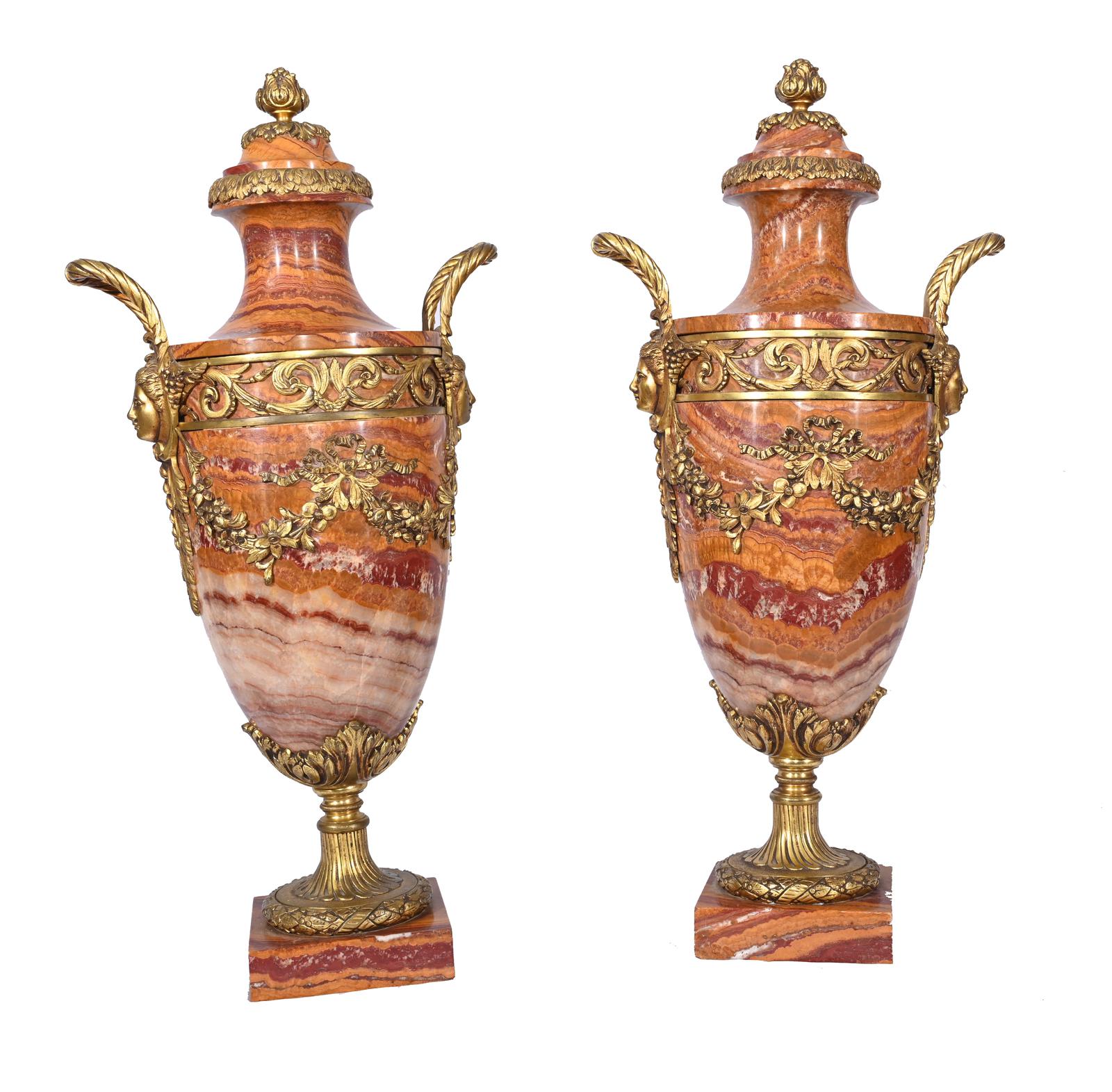 Pair of French Marble Urns Amphora Cassoulets Empire 1890
