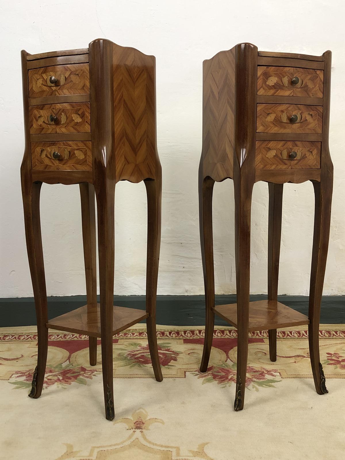 Pair of French Marquetry Bedside Tables Super Slim Cabinets Louis Style
