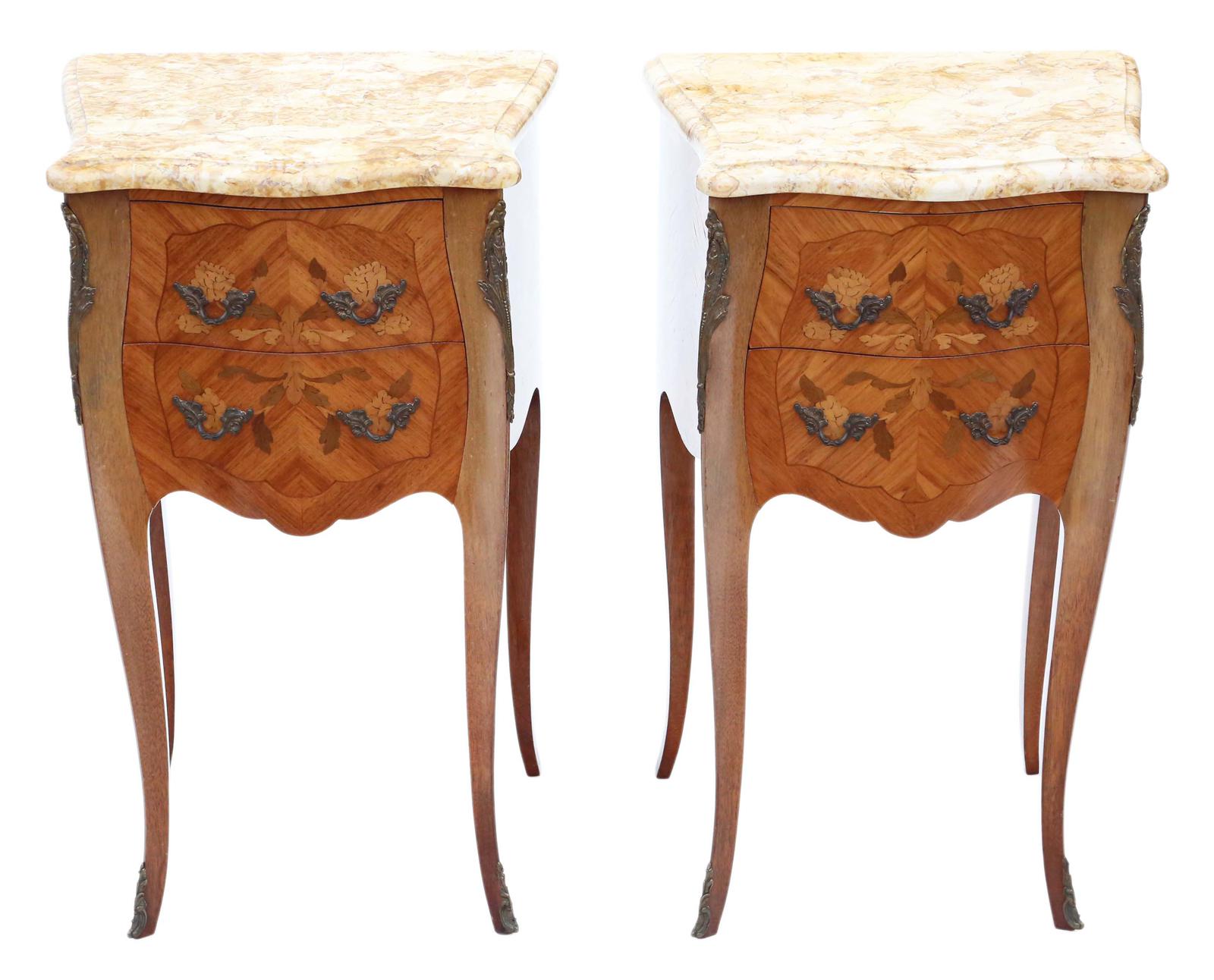Pair of French Marquetry Marble Bedside Tables (1 of 8)