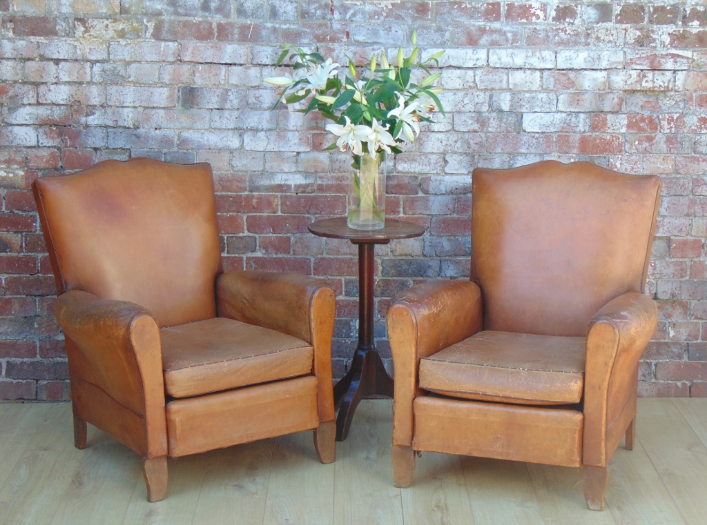 Pair of French Moustache Back Leather Club Chairs