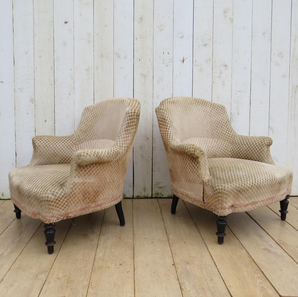 Pair Of French Napoleon III Tub Chairs For Re-upholstery