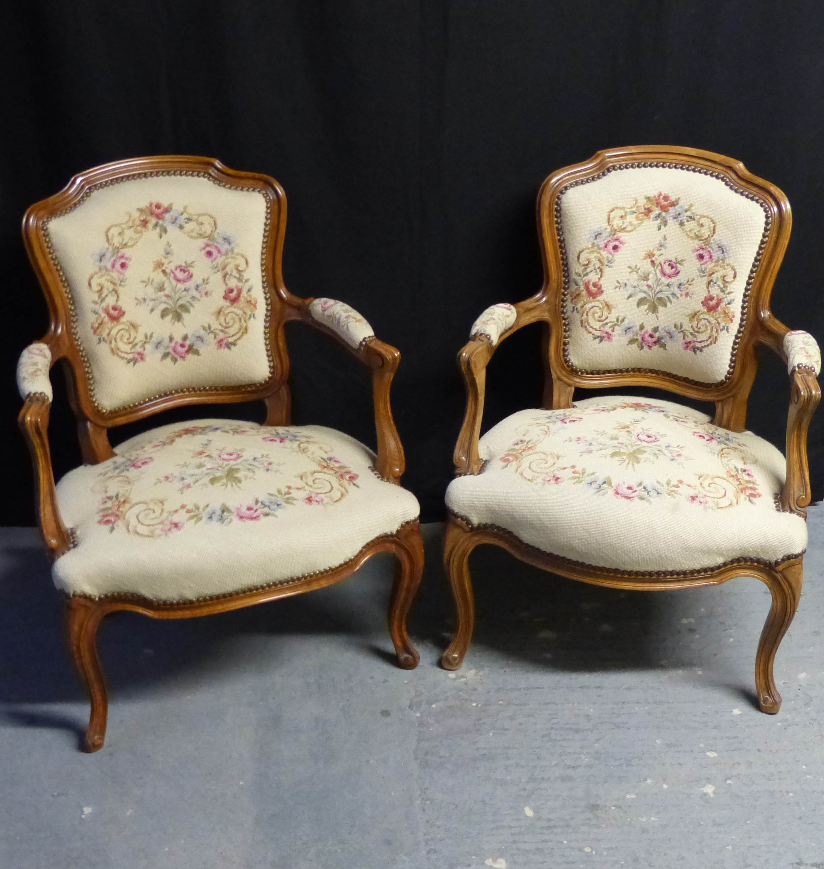 Pair of French Needlepoint Chairs