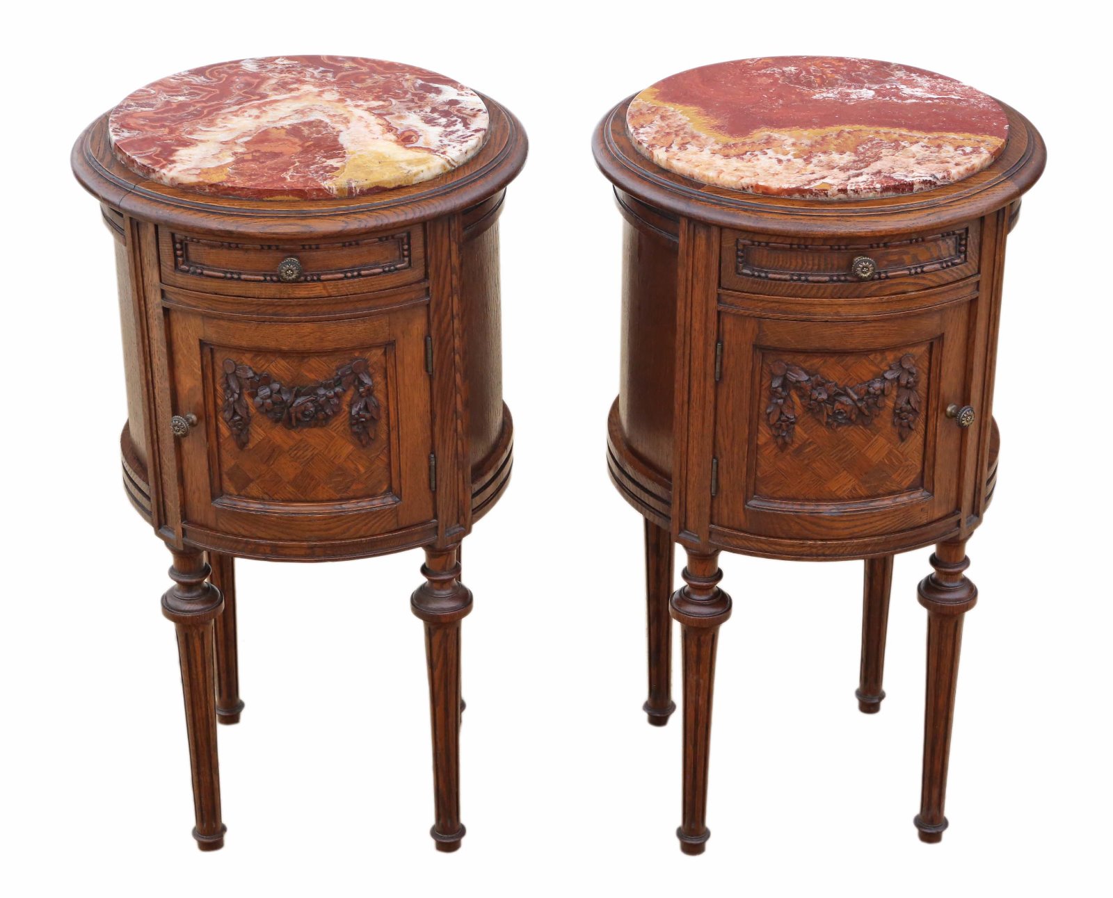 Pair of French Oak Cylindrical Bedside Tables Cupboards Marble (1 of 8)