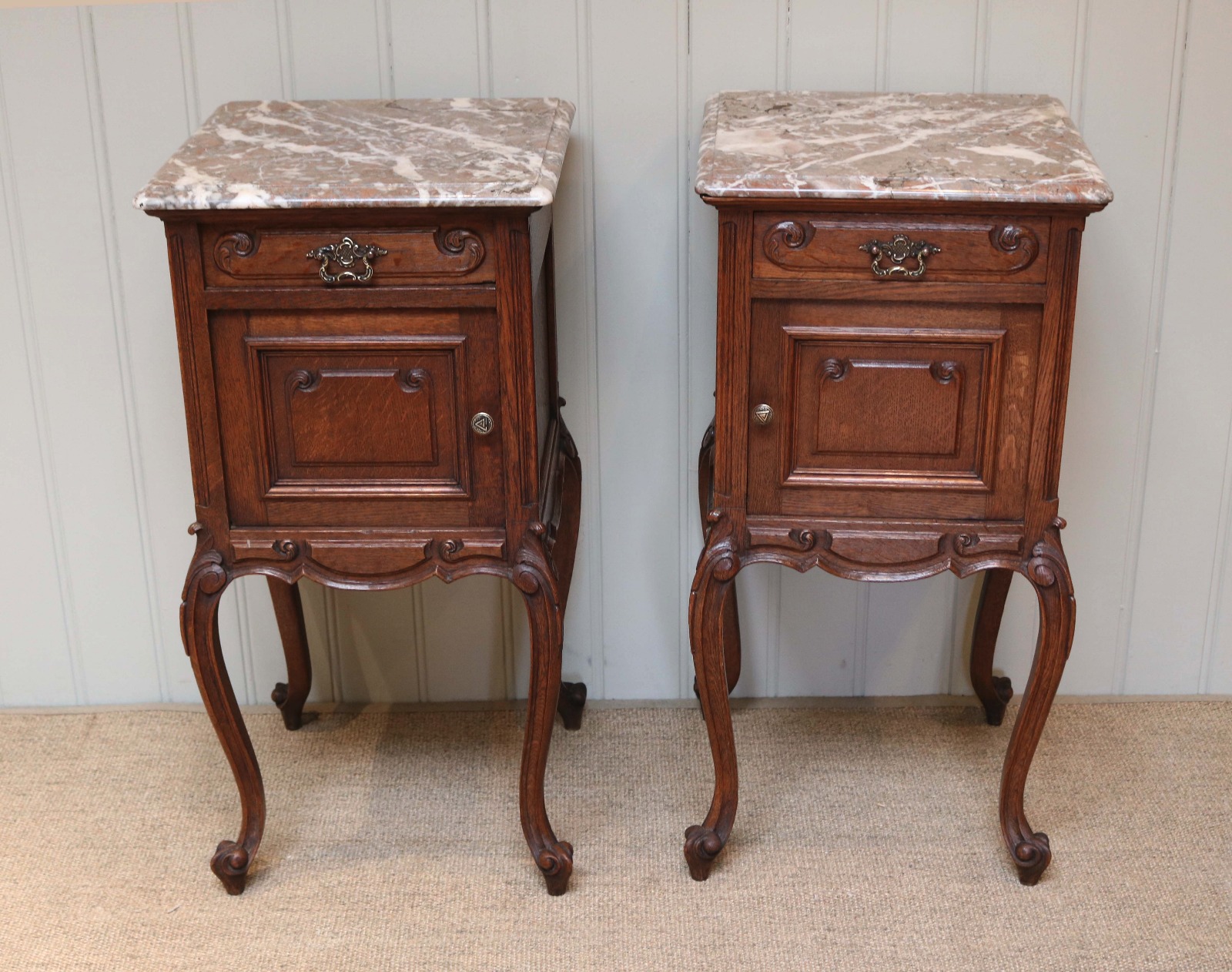 Pair of French Oak Marble Top Bedside Cabinets (1 of 1)