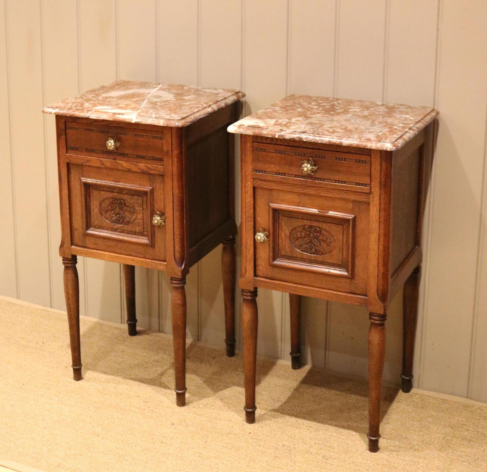 Pair of French Oak Marble Top Pot Cupboards (1 of 10)