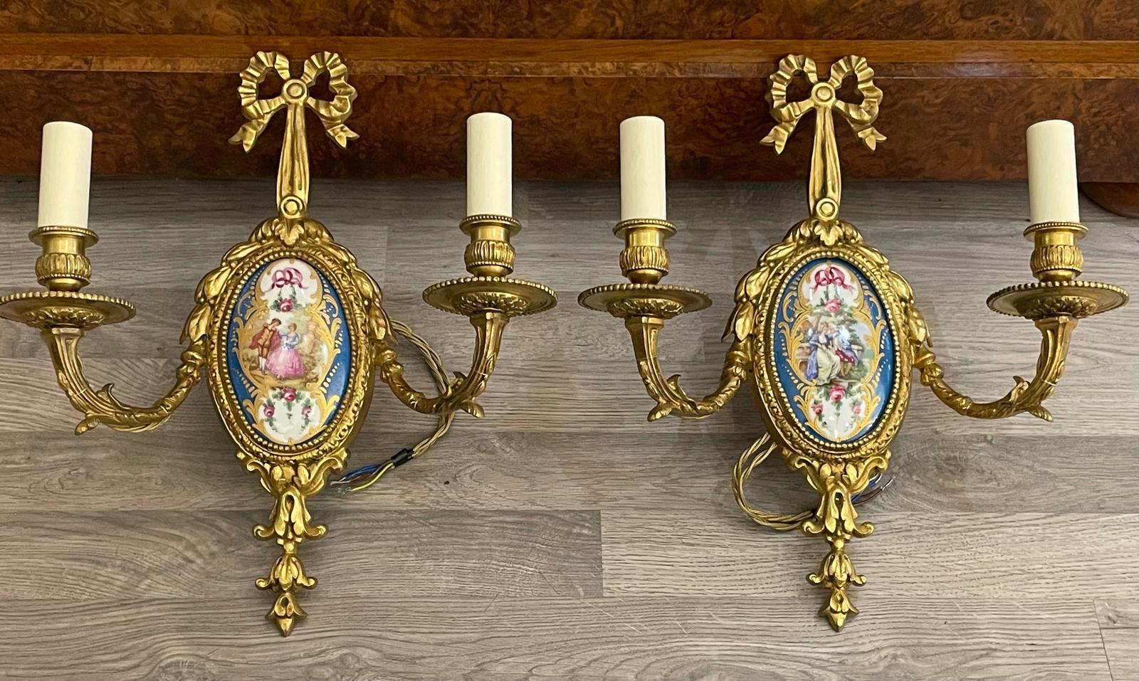 Pair of French Ormolu & Porcelain Wall Lights Sconces (1 of 7)