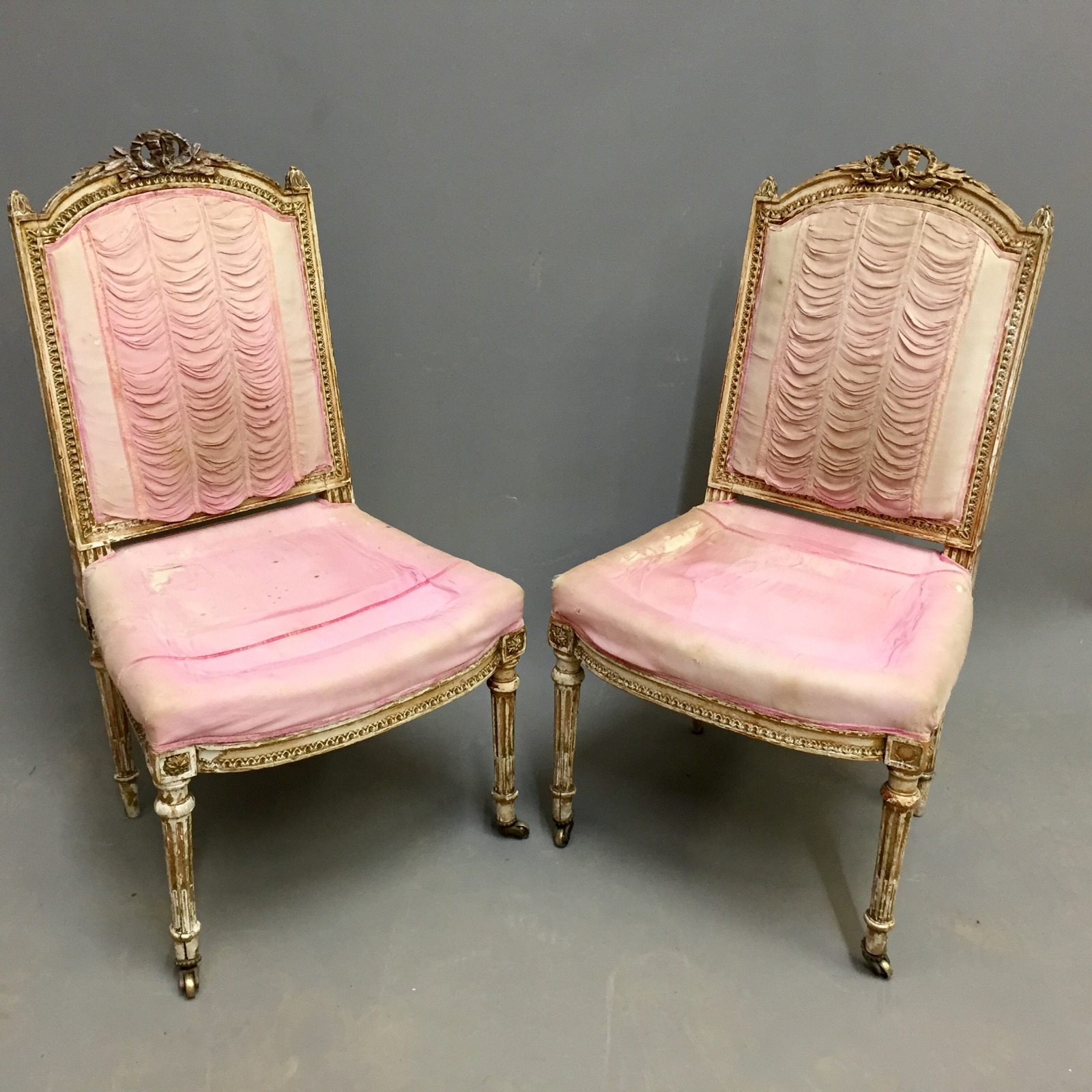 Pair of French Paint & Gilt Salon Chairs c.1880
