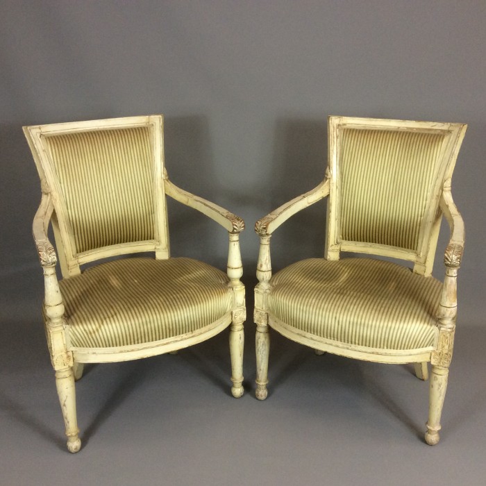 Pair of French Painted Directorie Open Armchairs