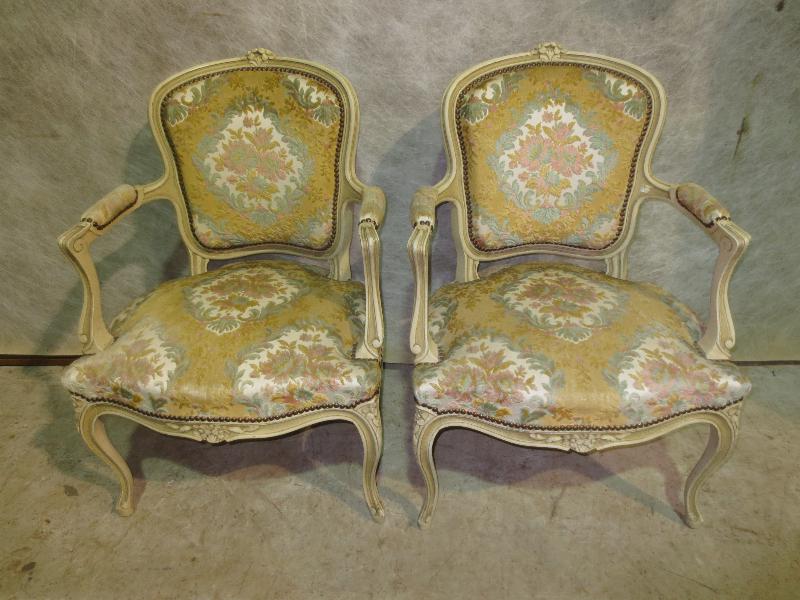 Pair of French Painted Louis XV Style Armchairs 1920's