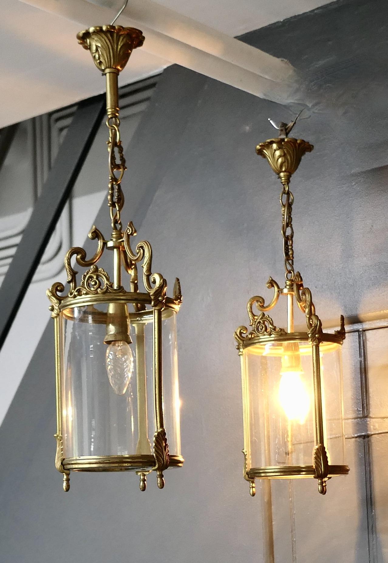 Pair of French Rococo Brass and Glass Lantern Hall Lights