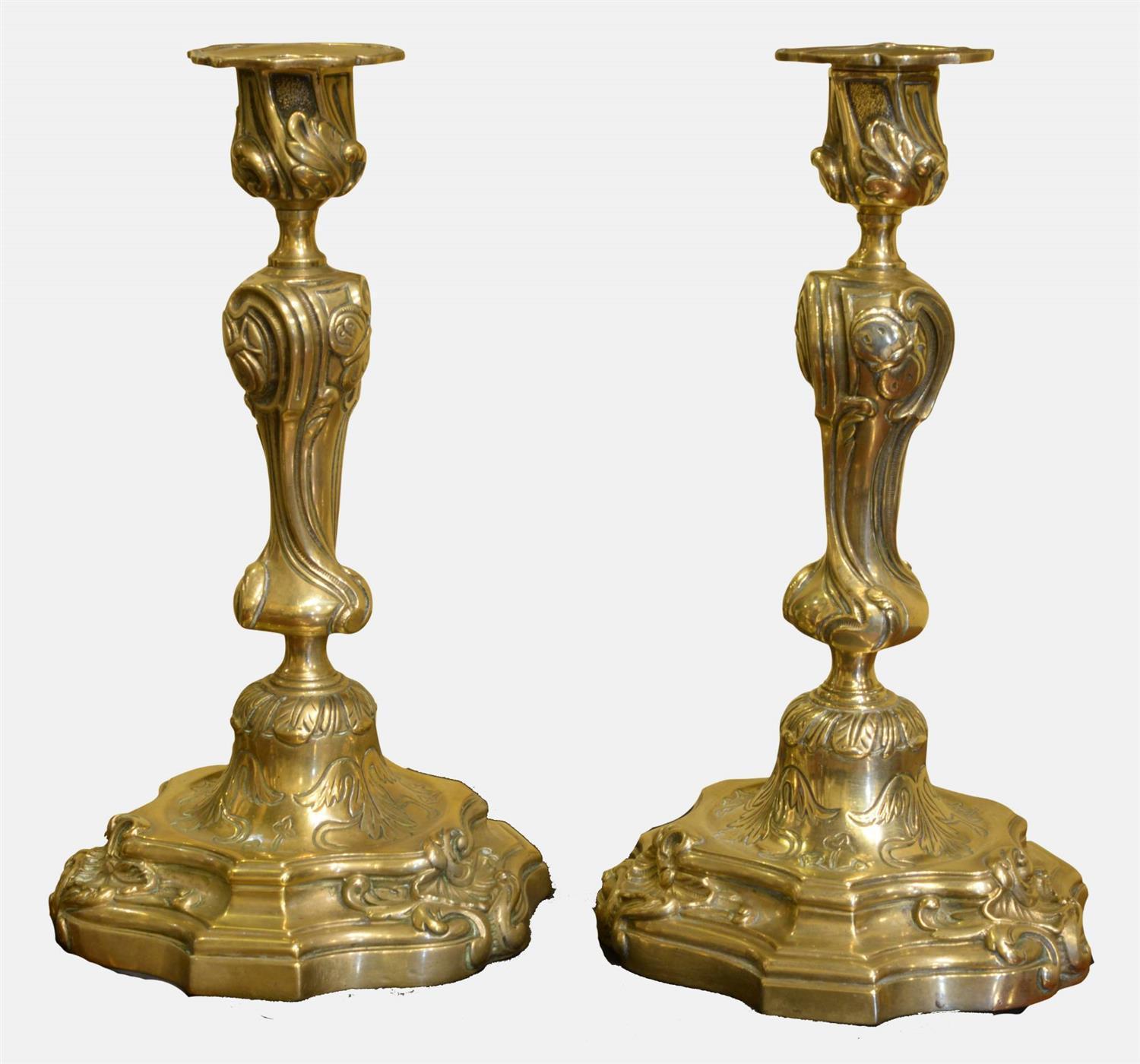 Pair of French Rococo Brass Candlesticks c.1820 (1 of 1)