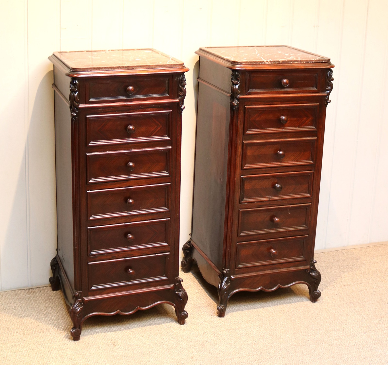 Pair of French Rosewood Marble Top Bedside Cabinets