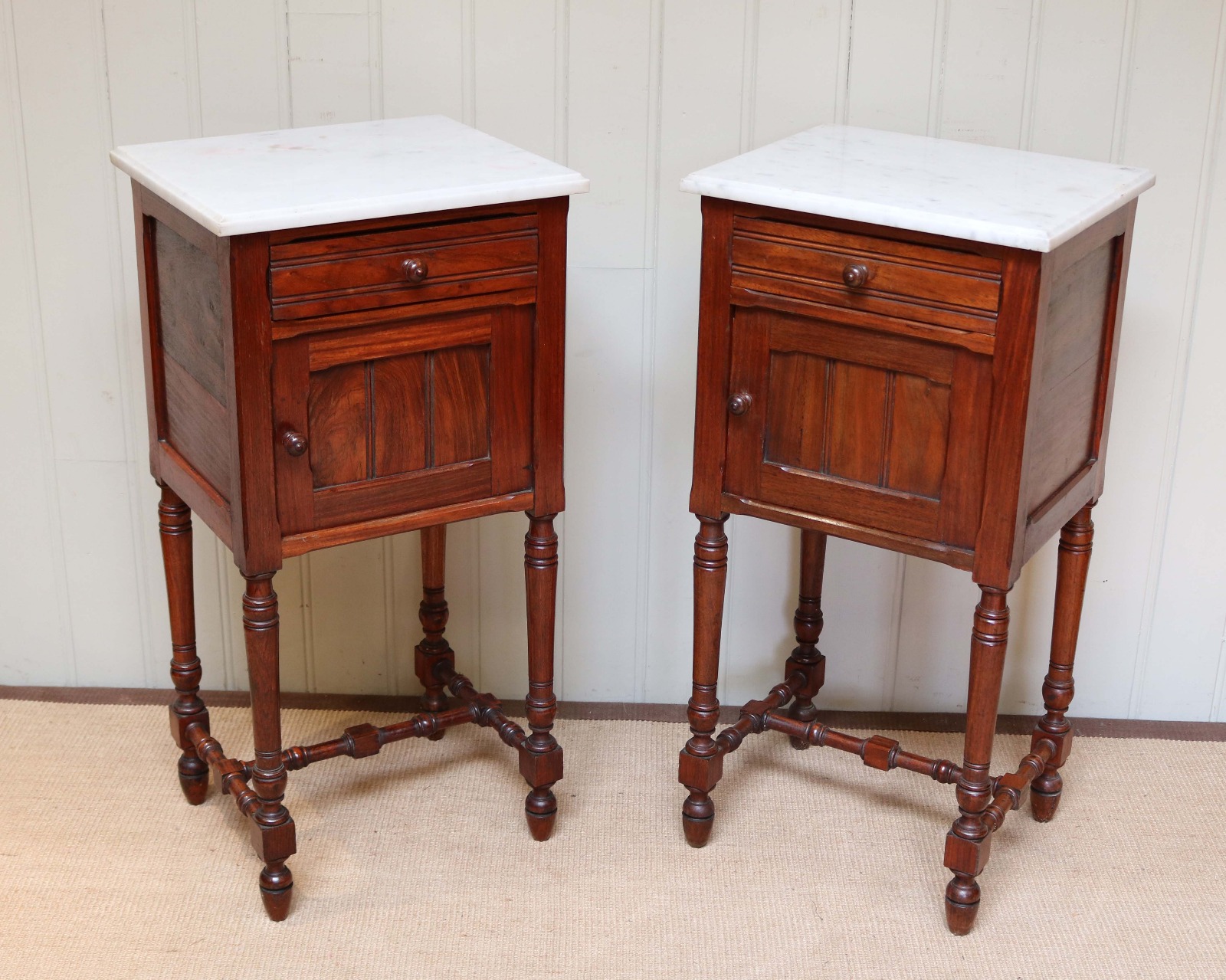 Pair of French Rosewood Marble Top Bedside Cabinets