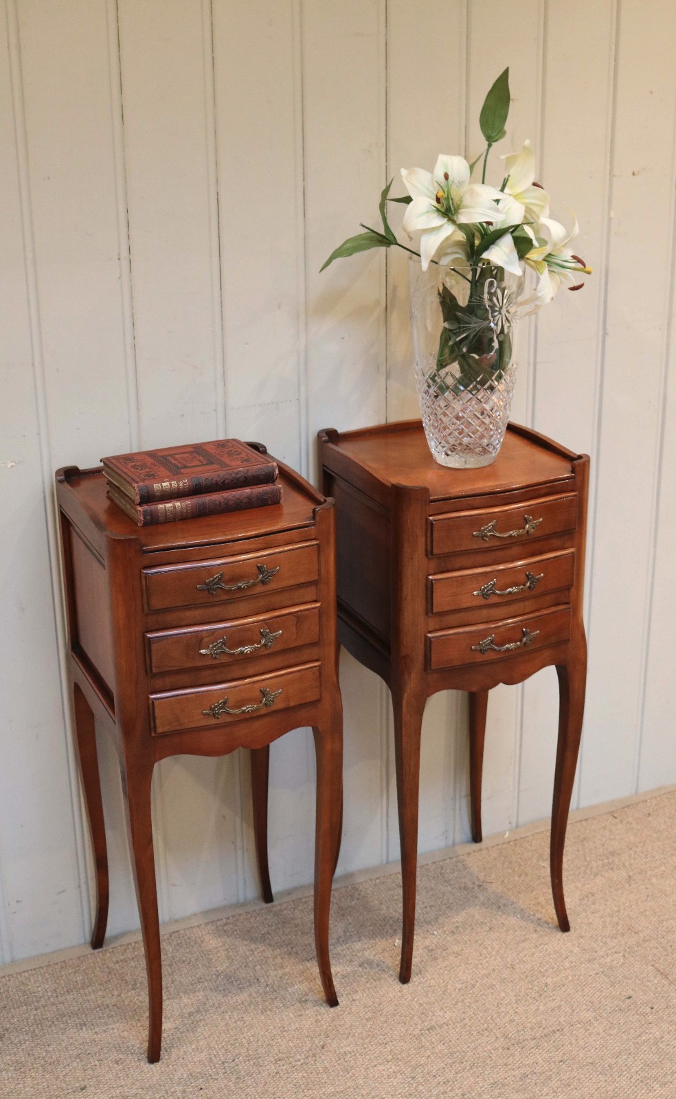 Pair of French Slim Cherrywood Bedside Cabinets c.1920