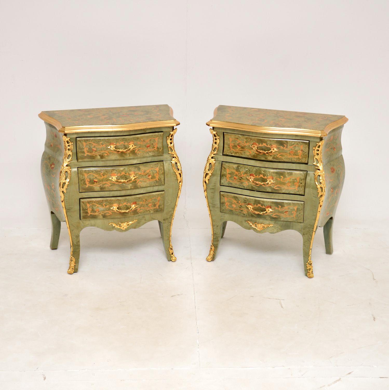 Pair of French Style Inlaid Marquetry Bedside Chests