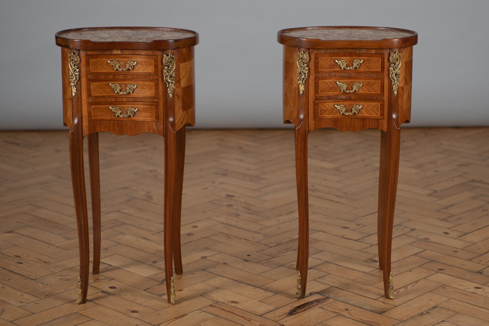 Pair of French Three Drawer Kidney Shaped Walnut Bedside Cabinets (1 of 1)