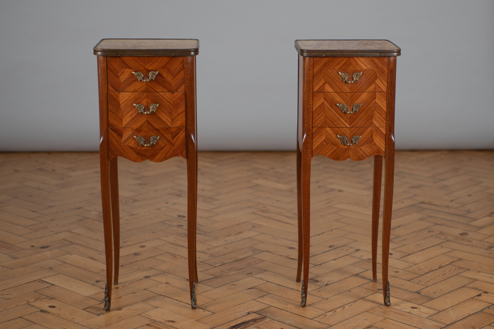 Pair of French Three Drawer Walnut Bedside Cabinets (1 of 11)