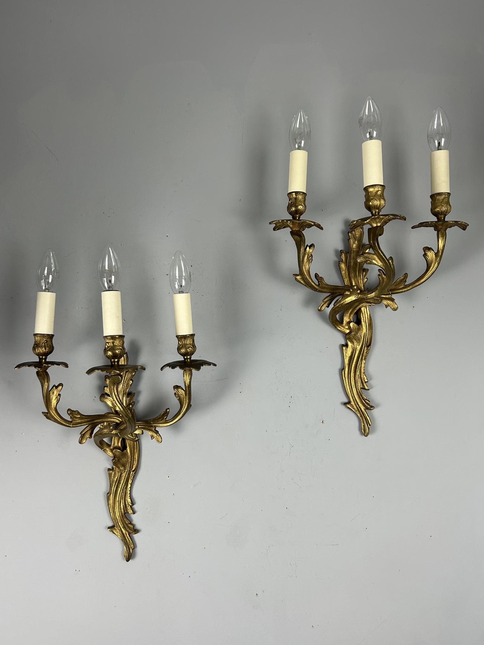 Pair of French Triple Arm Gilt Brass Wall Lights