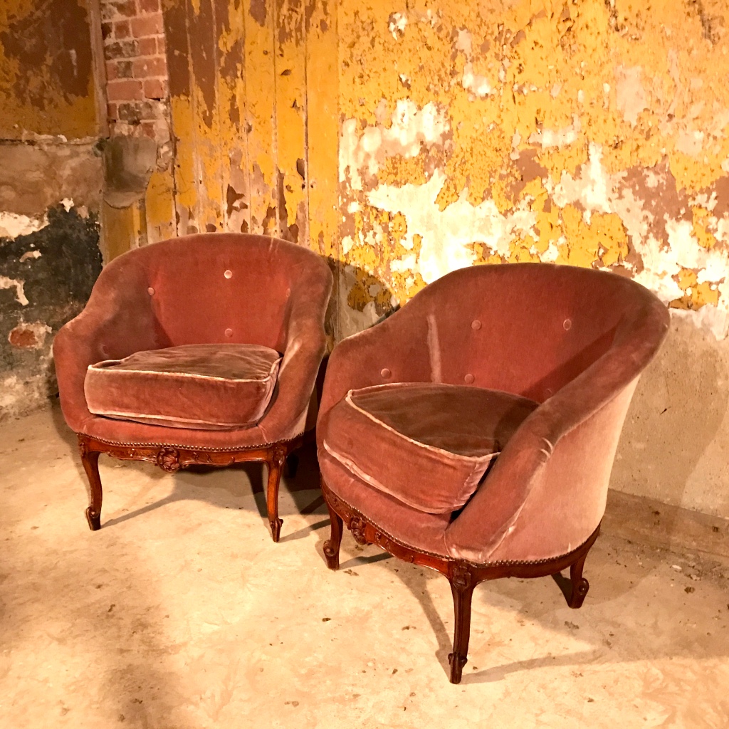 Pair of French Tub Chairs For Repholstery