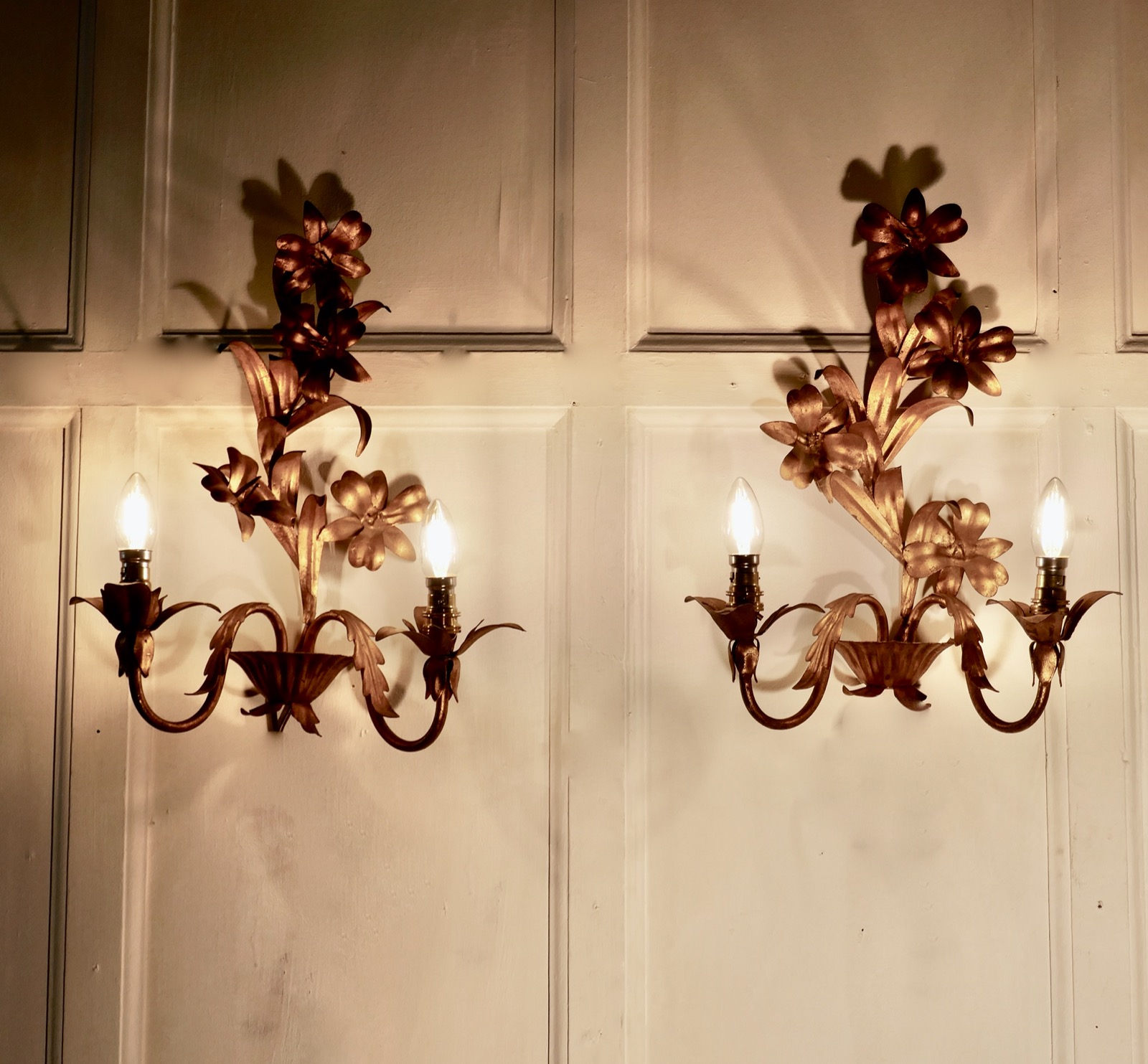 Pair of French Two Branch Toleware Gilded Wall Lights