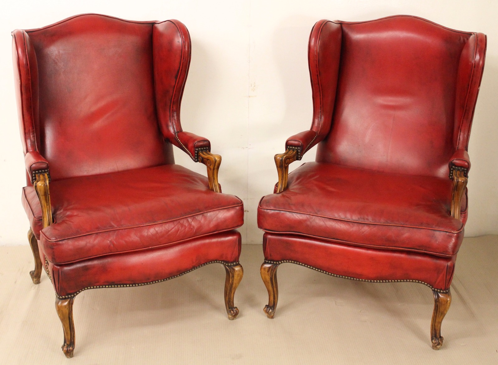 Pair of French Walnut and Leather Upholstered Armchairs c.1930