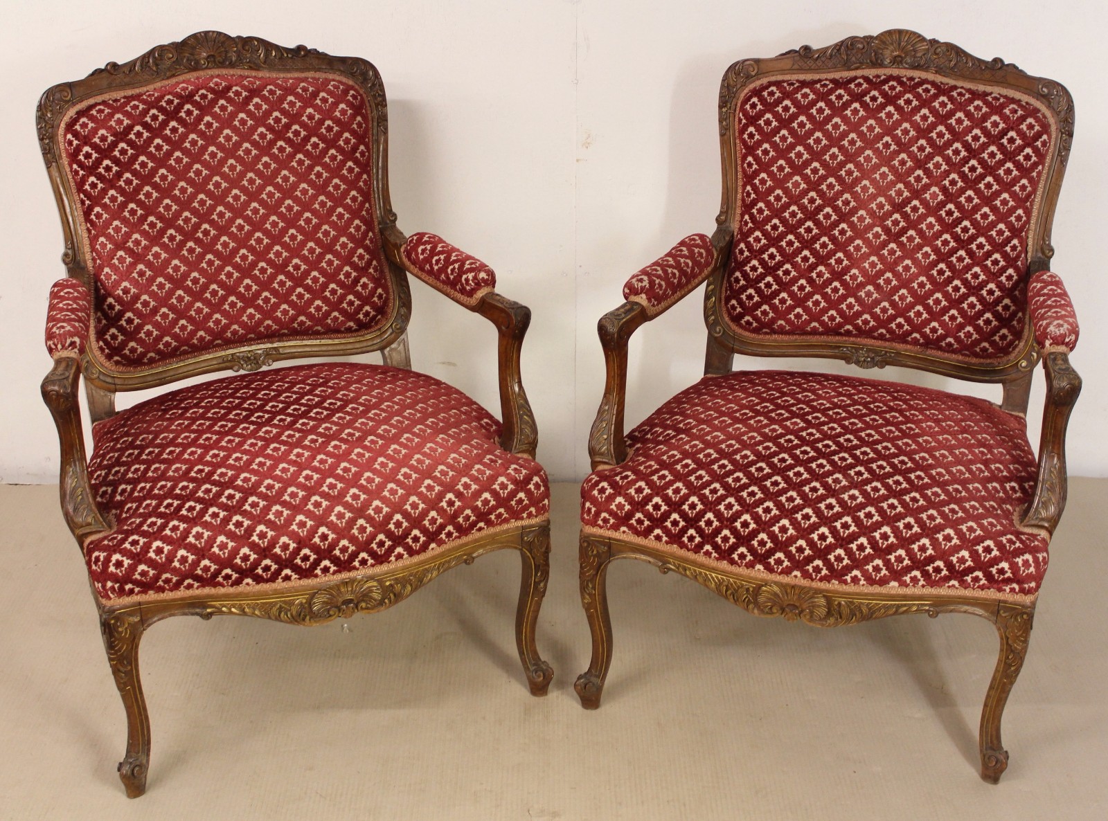 Pair of French Walnut Armchairs c.1880 (1 of 1)