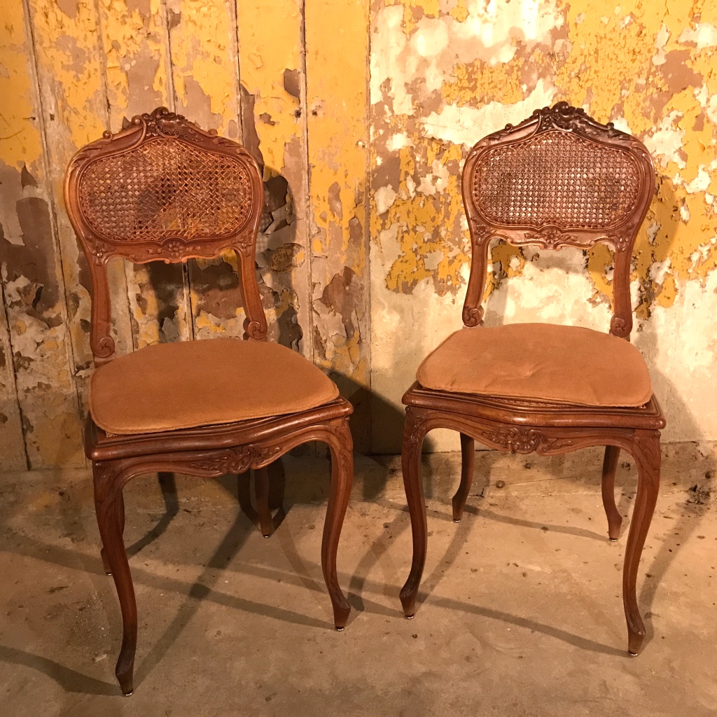Pair of French Walnut & Cane Bedroom Chairs