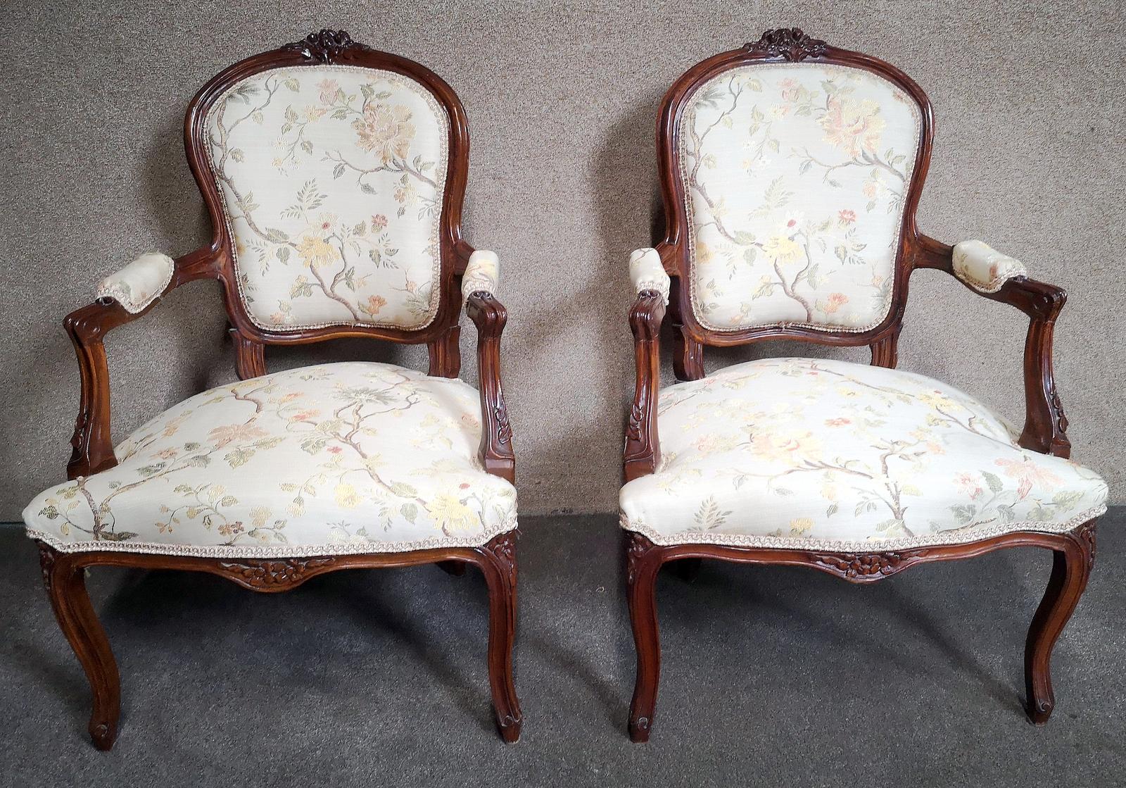 Pair of French Walnut Fauteuil Armchairs