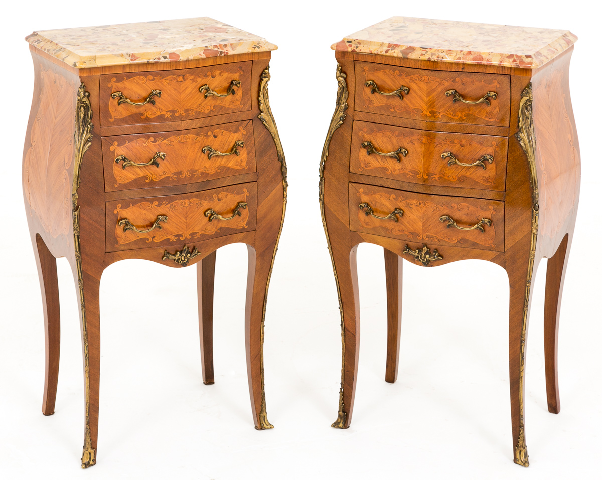 Pair of French Walnut Inlaid Bedside Cabinets c.1920 (1 of 1)