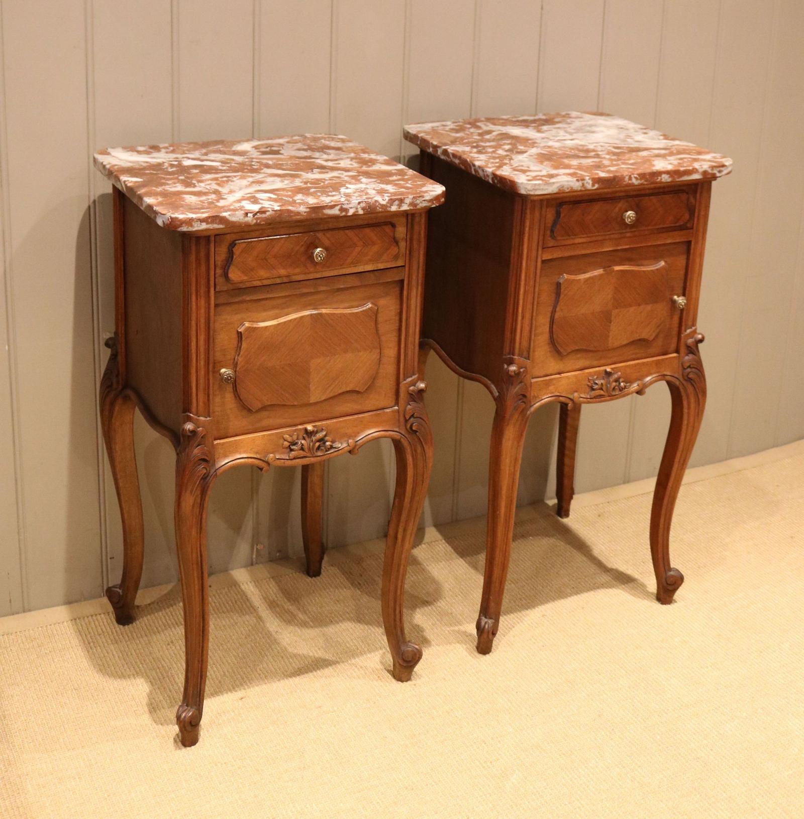 Pair of French Walnut Marble Top Bedside Cabinets (1 of 10)
