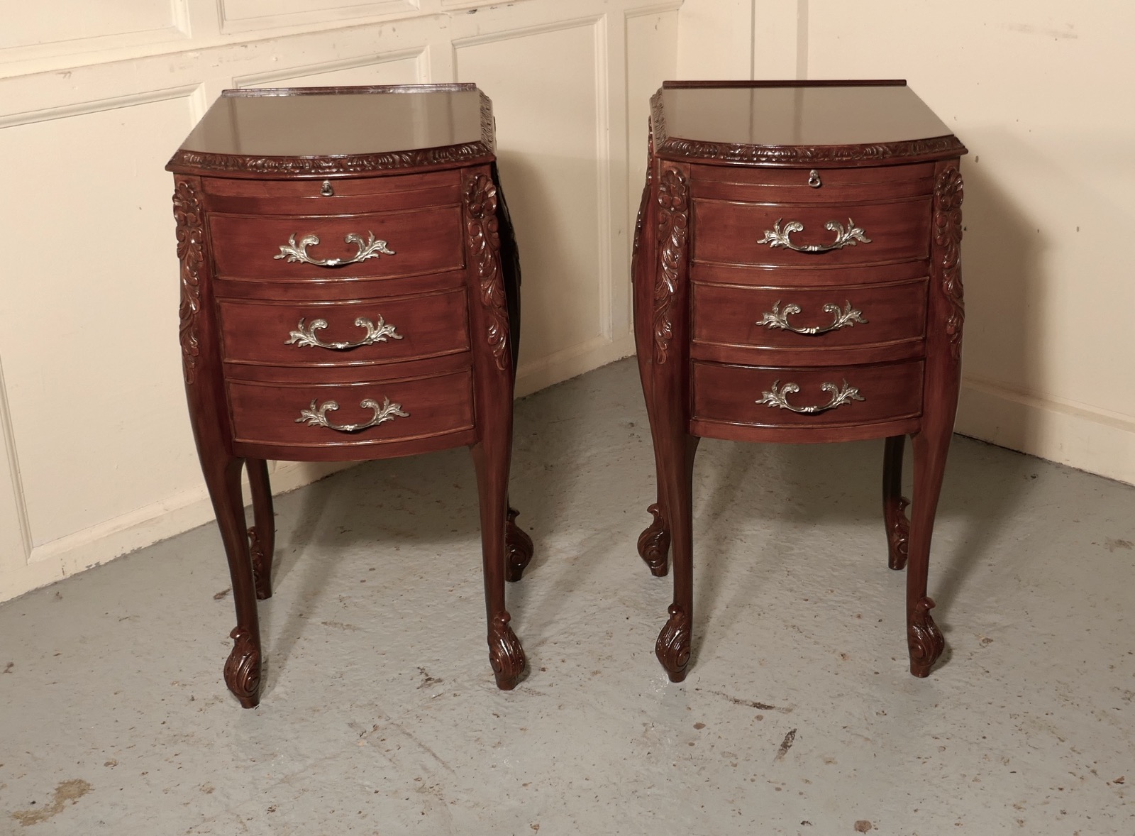 Pair of French Walnut & Ormolu 3 Drawer Bedside Chests c.1900