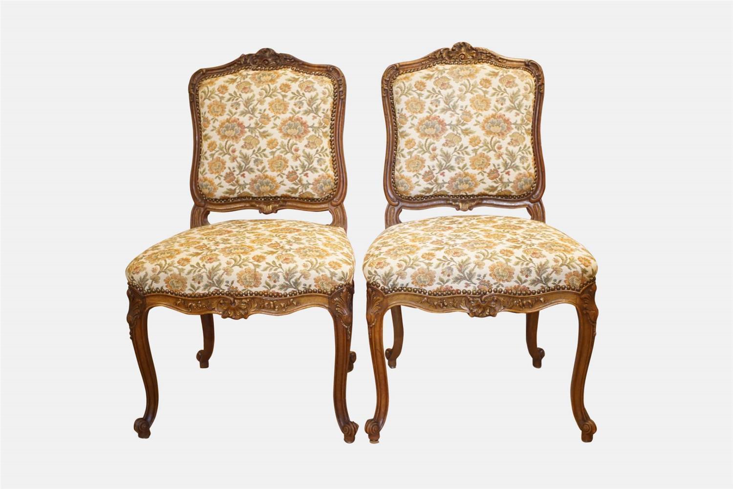 Pair of French Walnut & Parcel Gilt Side Chairs c.1900 (1 of 1)