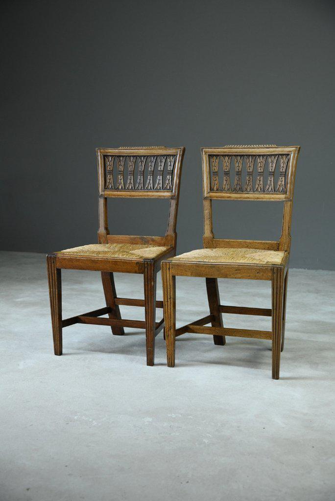 Pair of Fruitwood Rush Kitchen Chairs