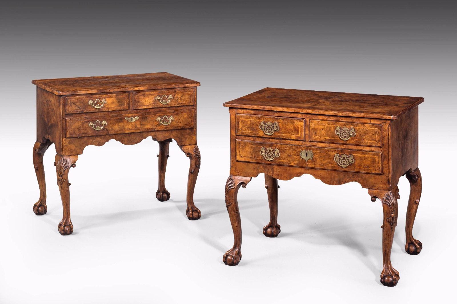 Pair of George I Period Walnut Lowboys with Herringbone Inlay