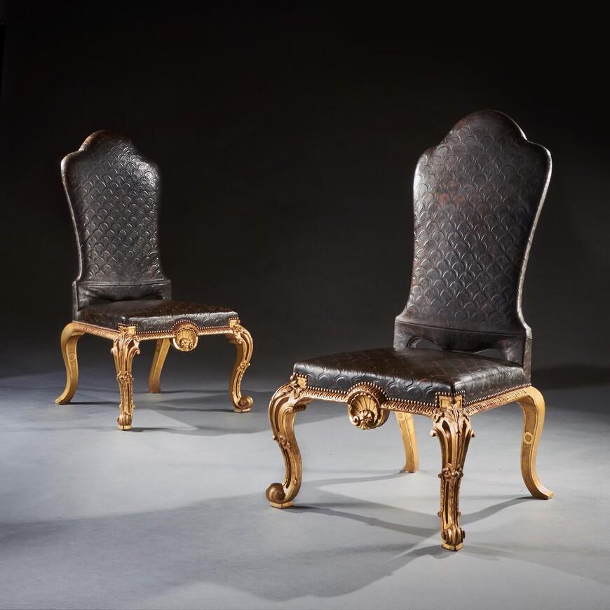 Pair of George I Style Late 19th Century Giltwood & Leather Side Chairs