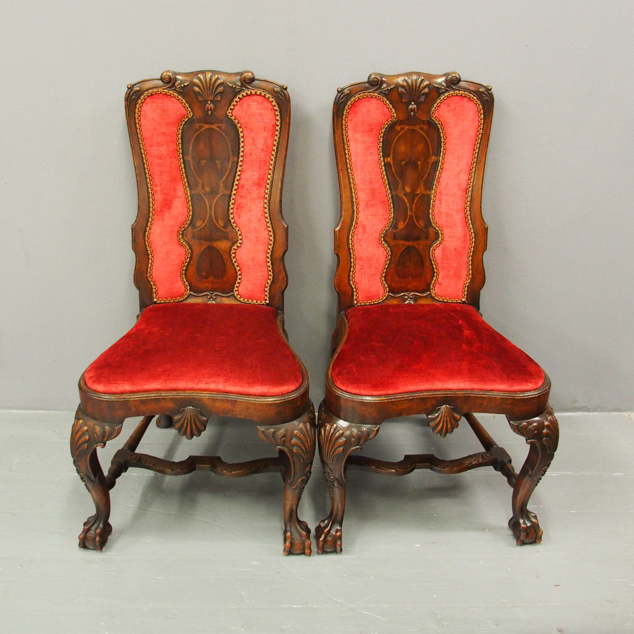 Pair of George I Style Walnut Dining Chairs c.1900 (1 of 16)