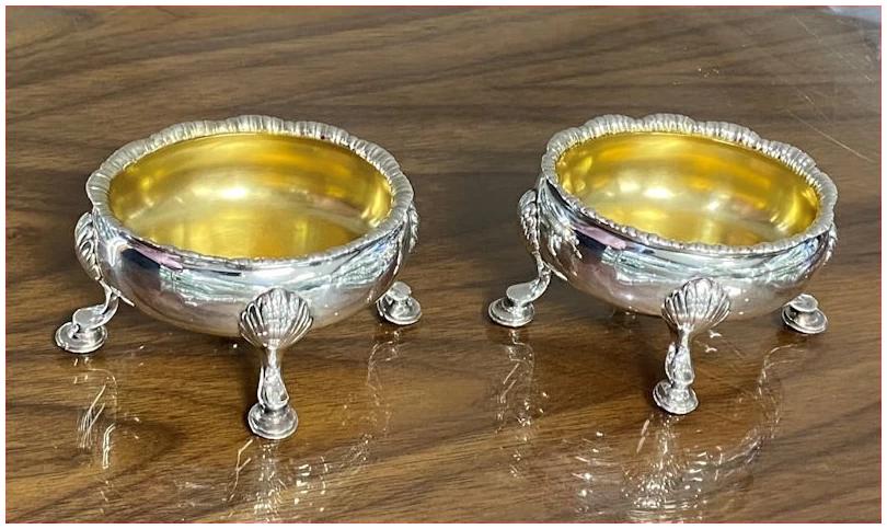 Pair of George II Antique Silver Salts Made in 1758-1759